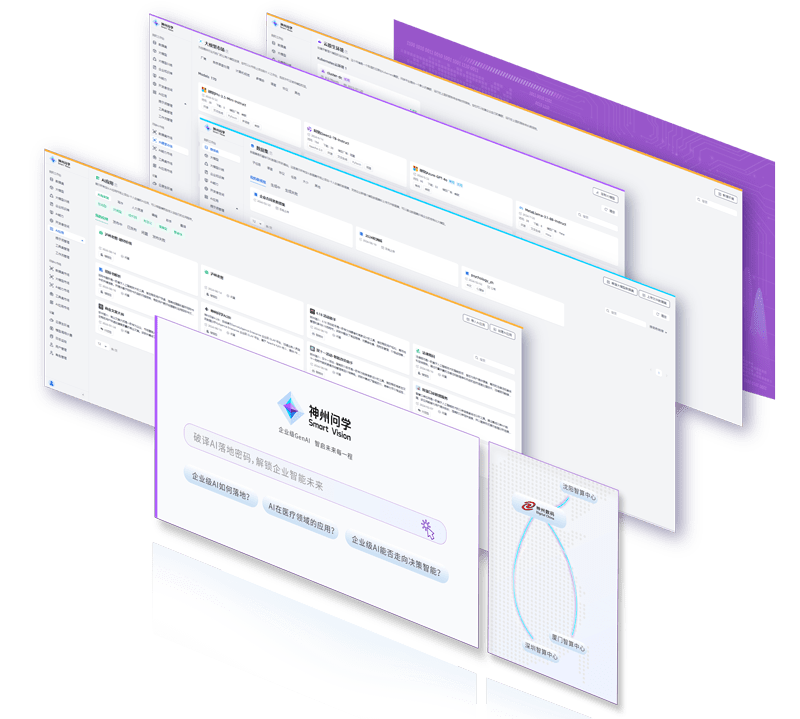 打通GenAI落地企业的算力、、、模型、、、知识、、、、应用四大要素,,综合解决GenAI工程在选、、、、练、、、用、、管四大环节的问题,,,,旨在为企业的数智化转型提供全套的GenAI智能应用工程流水线。。。。RB88问学包括模型算力管理平台、、、、企业私域知识管理平台、、、AI应用工程平台三大模块,,,,为企业提供更先进、、更匹配的大模型,,,解决了算力上信创适配、、、融合调度、、、企业私域大模型高效推理训练问题,,同时解决了数据到知识的向量化以及场景应用的轻量化组装问题。。。。